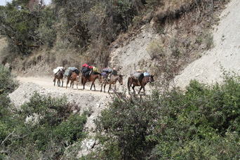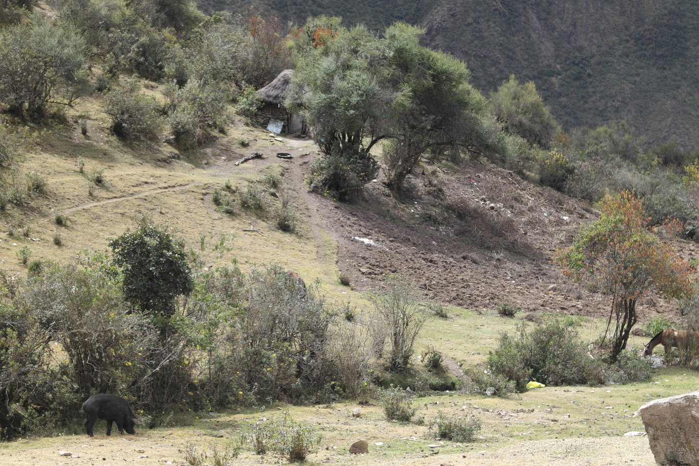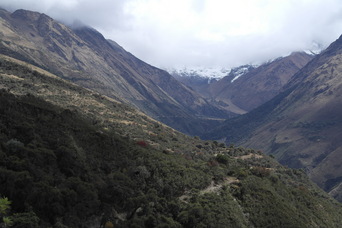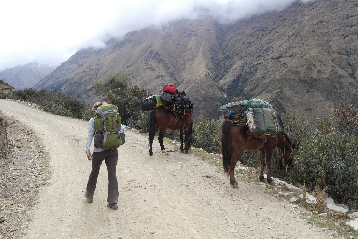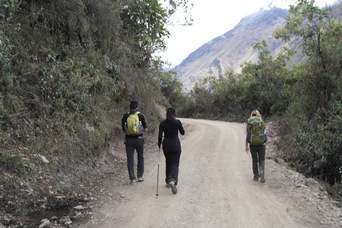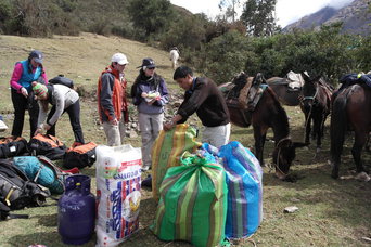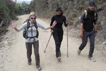 First day of the Trek. Jody with Reni and Fleurant. A Peruvian "snack shack".