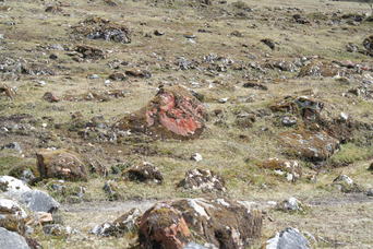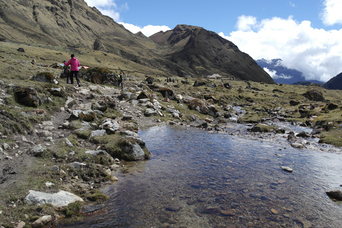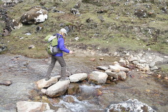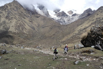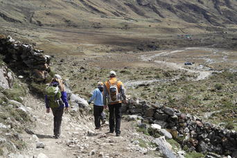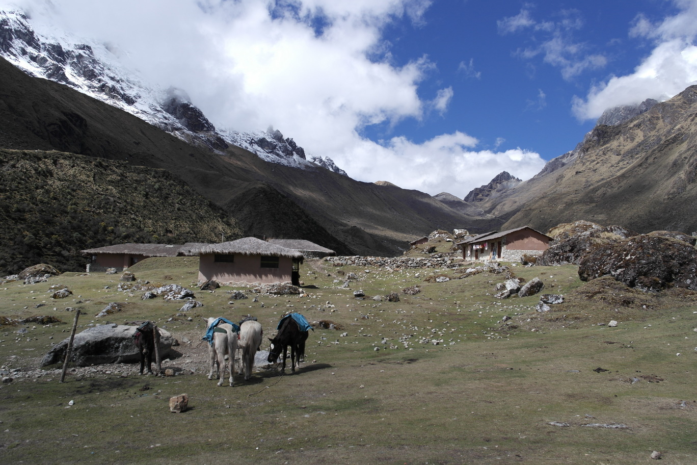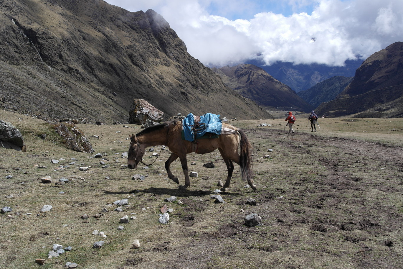 Unladen horses heading back over the pass for gear and people.