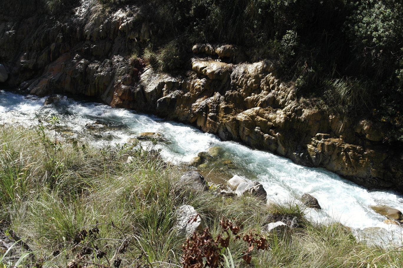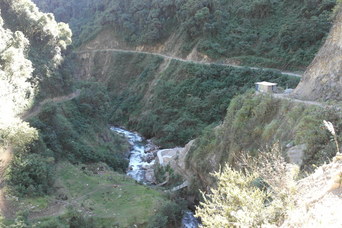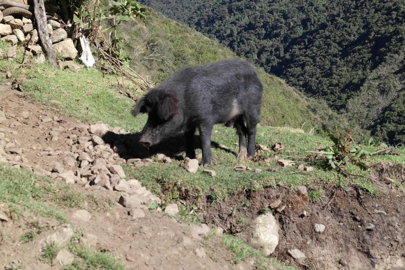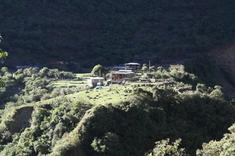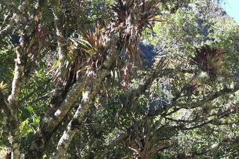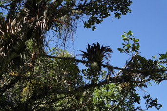 The village near our camp. Bromeliads in the trees (and up the cliffs)