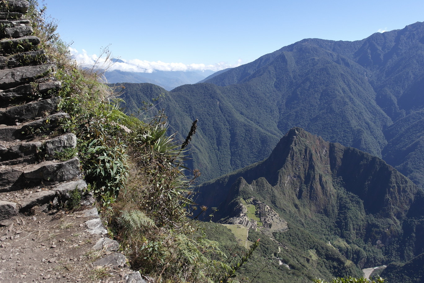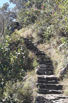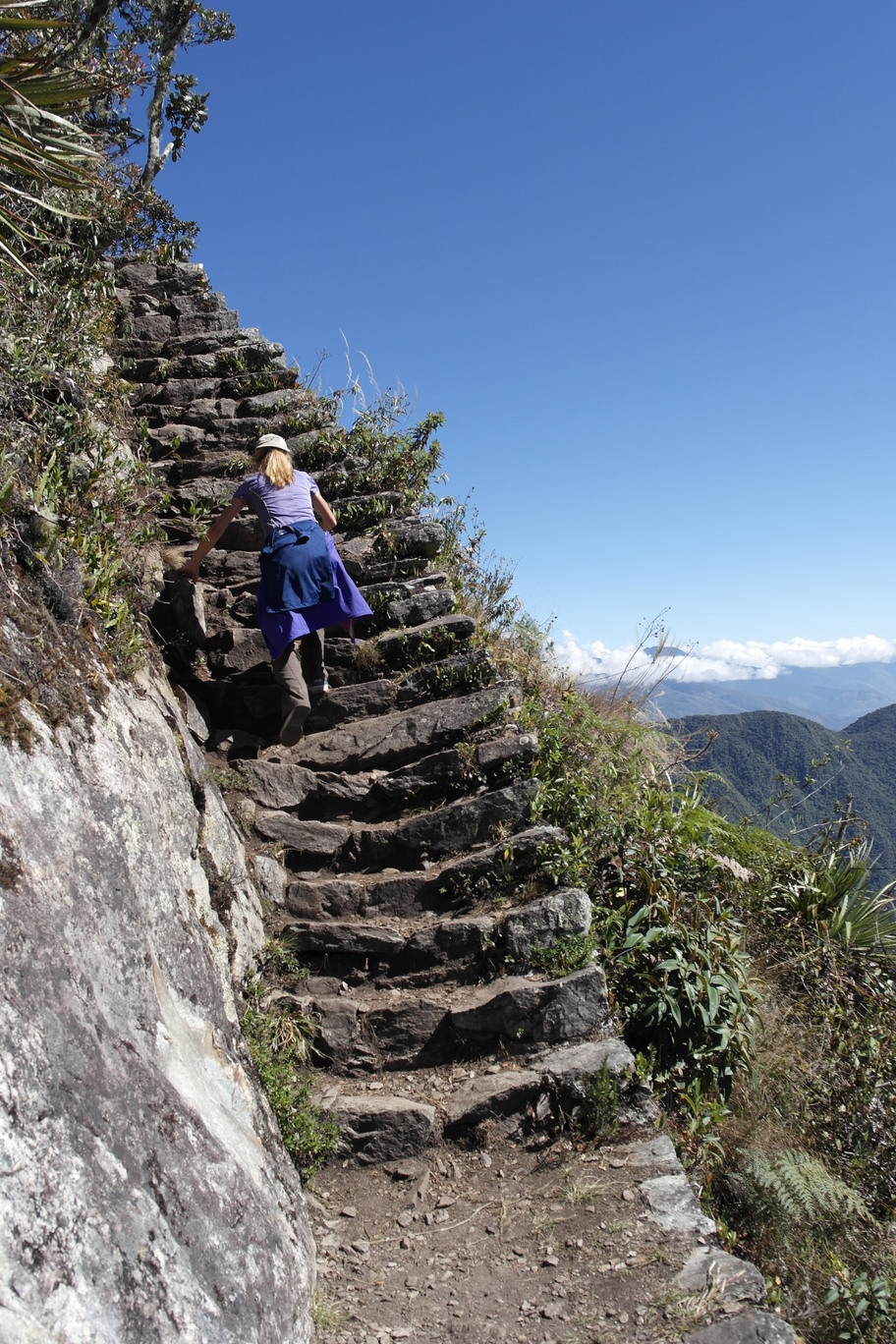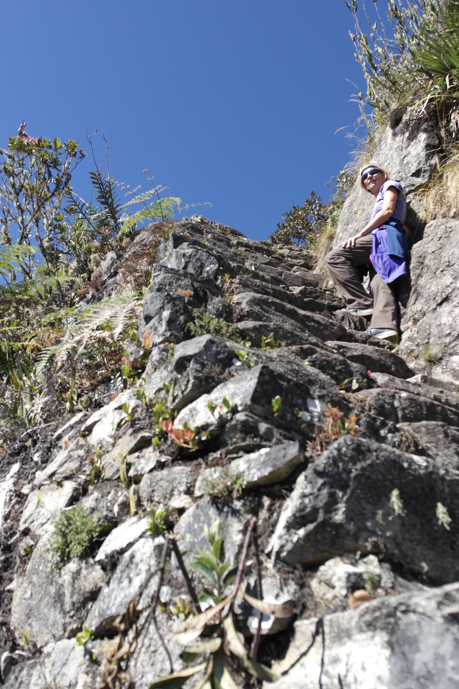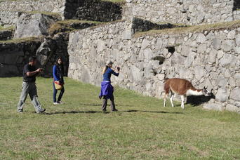 Hunting a llama. We hiked up the 10,000 ft Machu Pichu Mountain, which has Inca stairs going up the whole way.