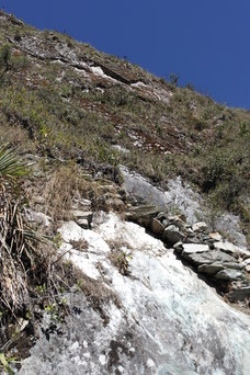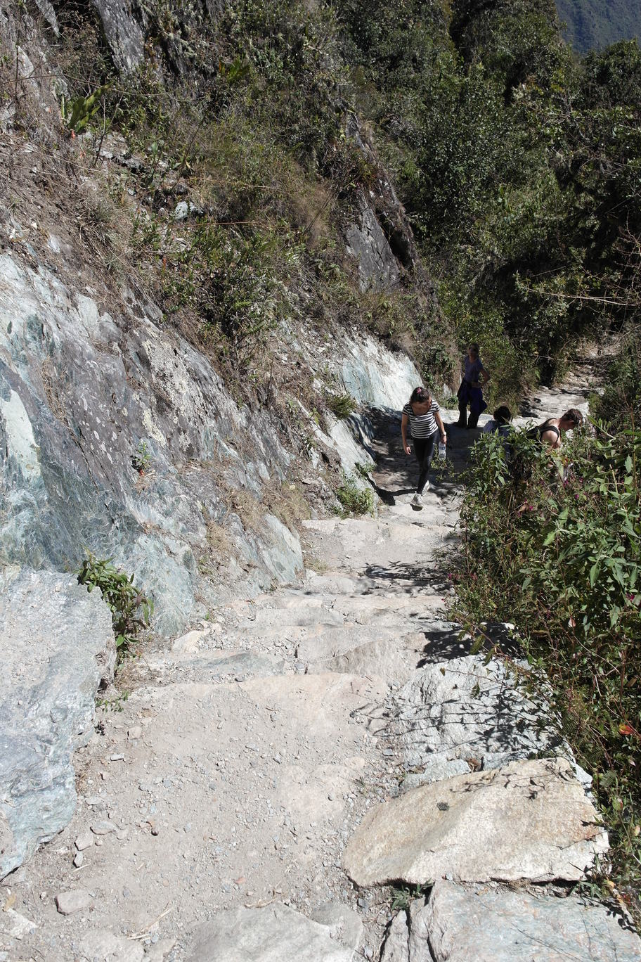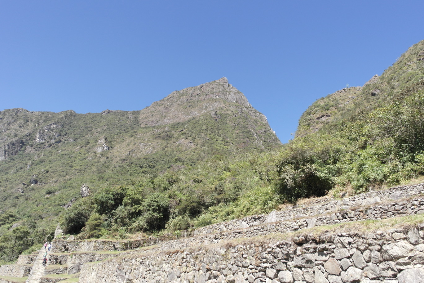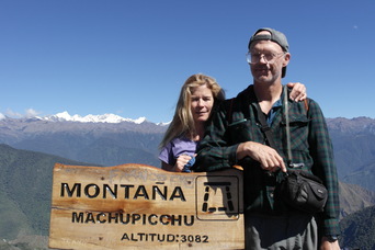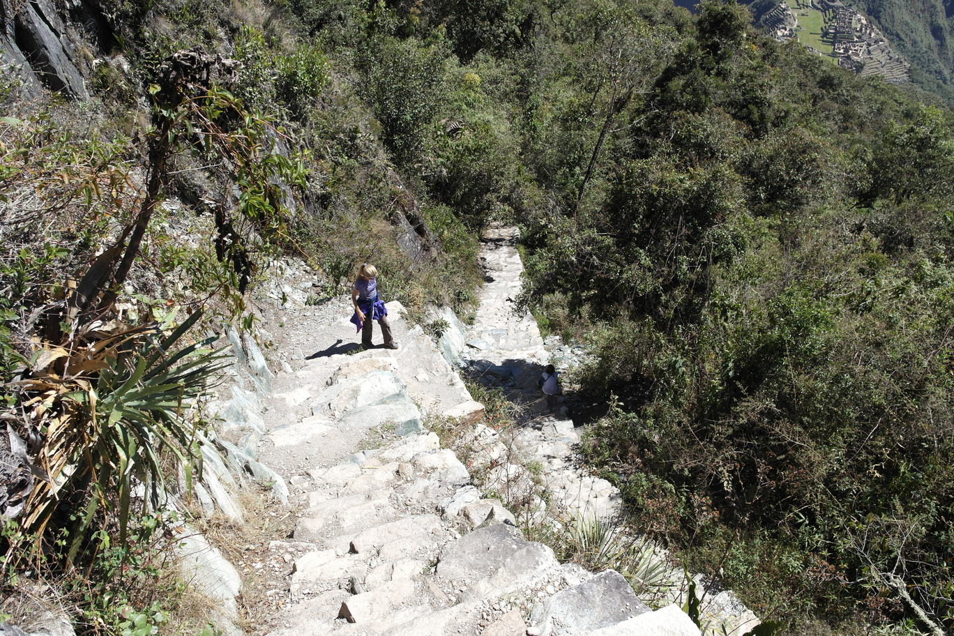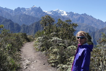 From the top of Machu Pichu Mountain you can see the top of Salkantay (upper right photos). The lower right picture is looking up at Machu Pichu Mountain