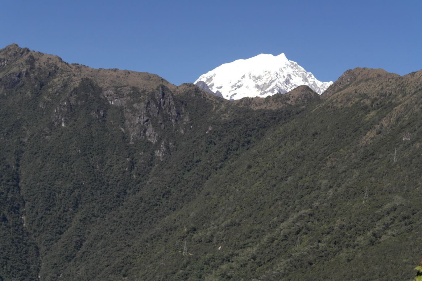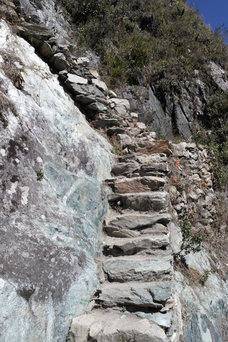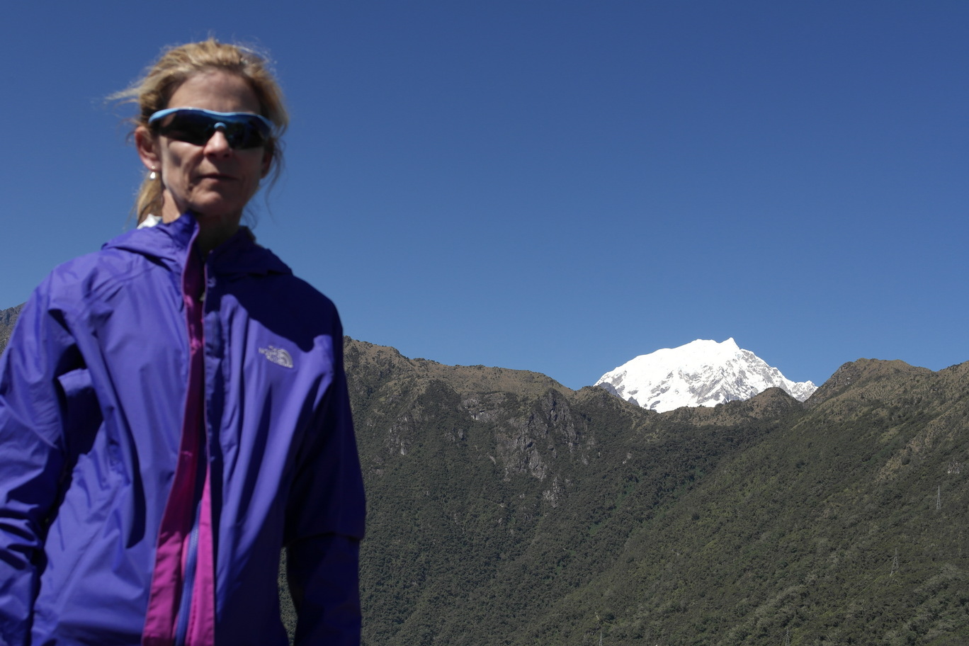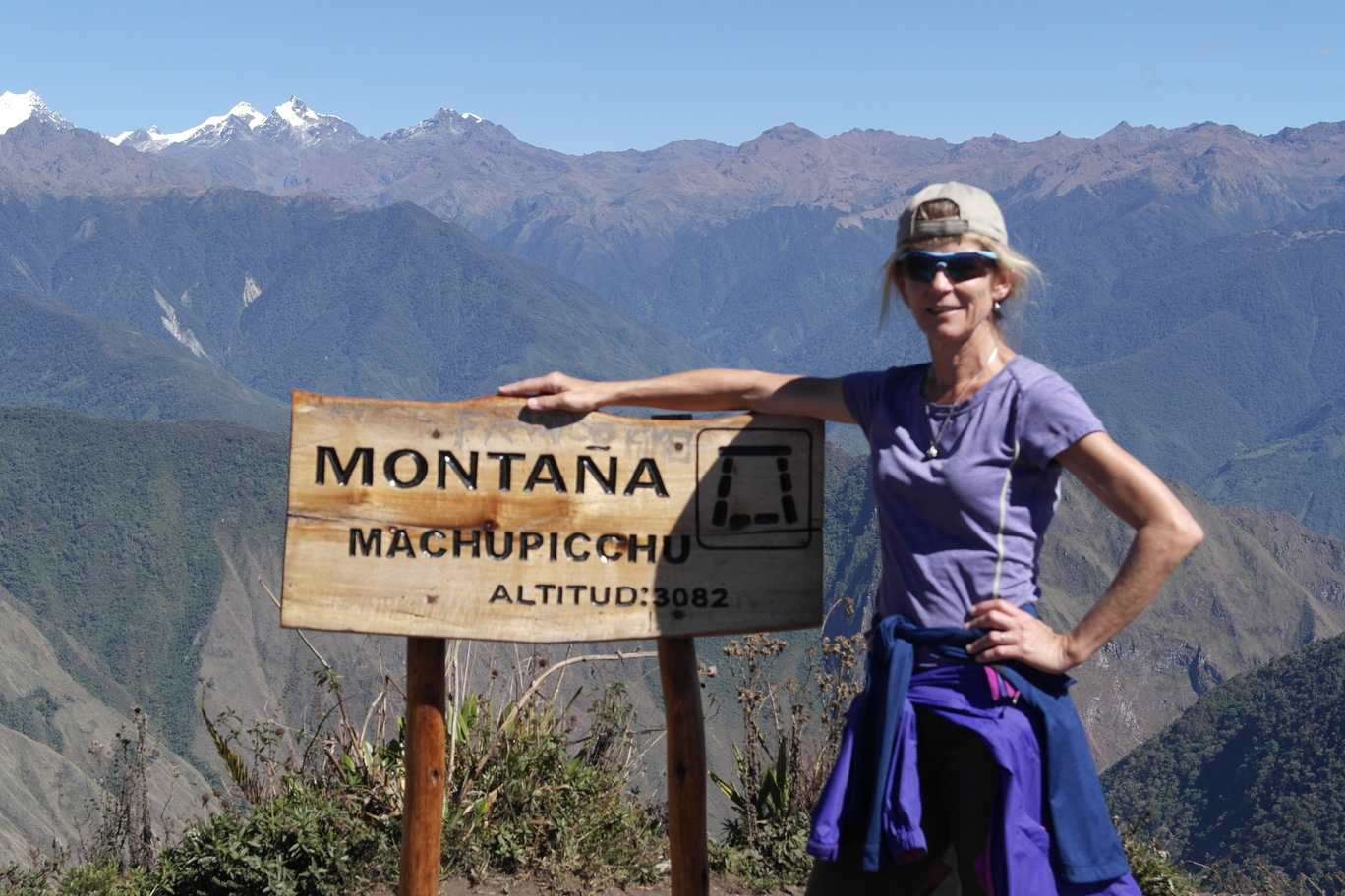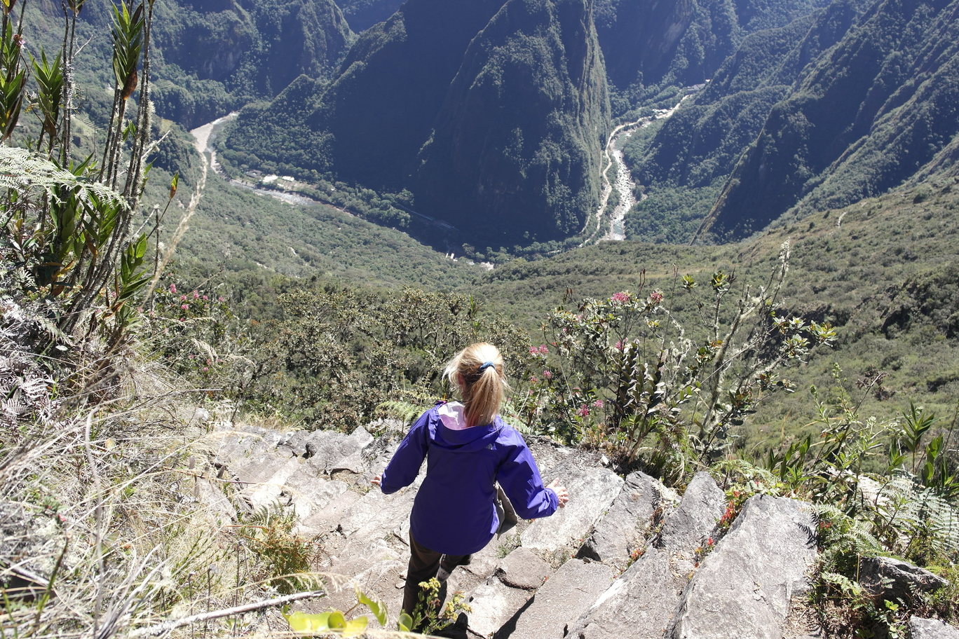 From the top of Machu Pichu Mountain you can see the top of Salkantay (upper right photos). The lower right picture is looking up at Machu Pichu Mountain