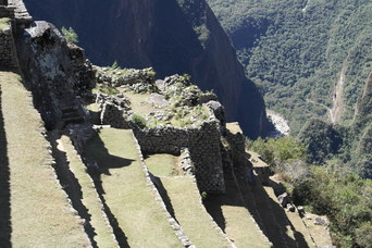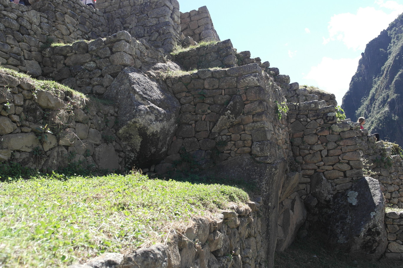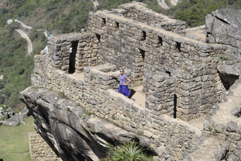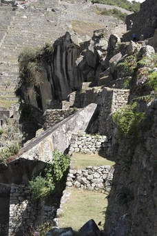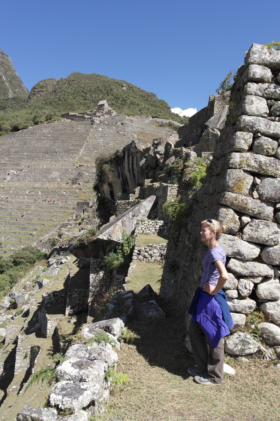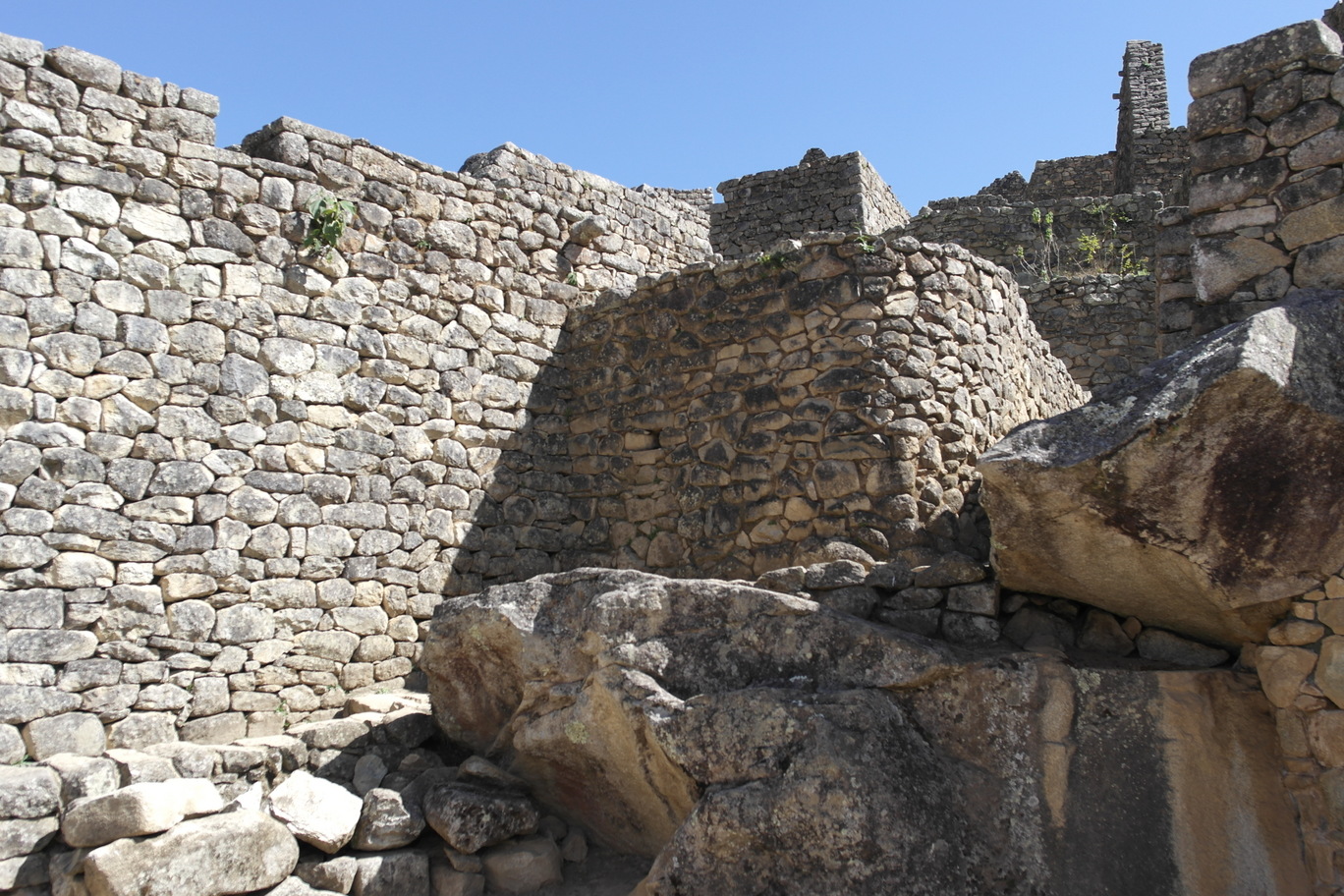 Exploring the lower parts of Machu Pichu. I love how the walls are built right around native rocks.
