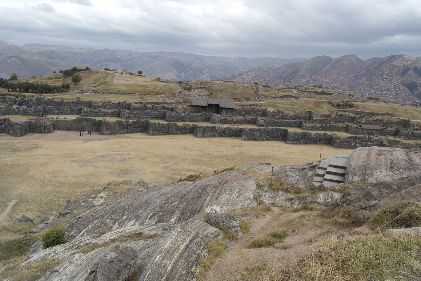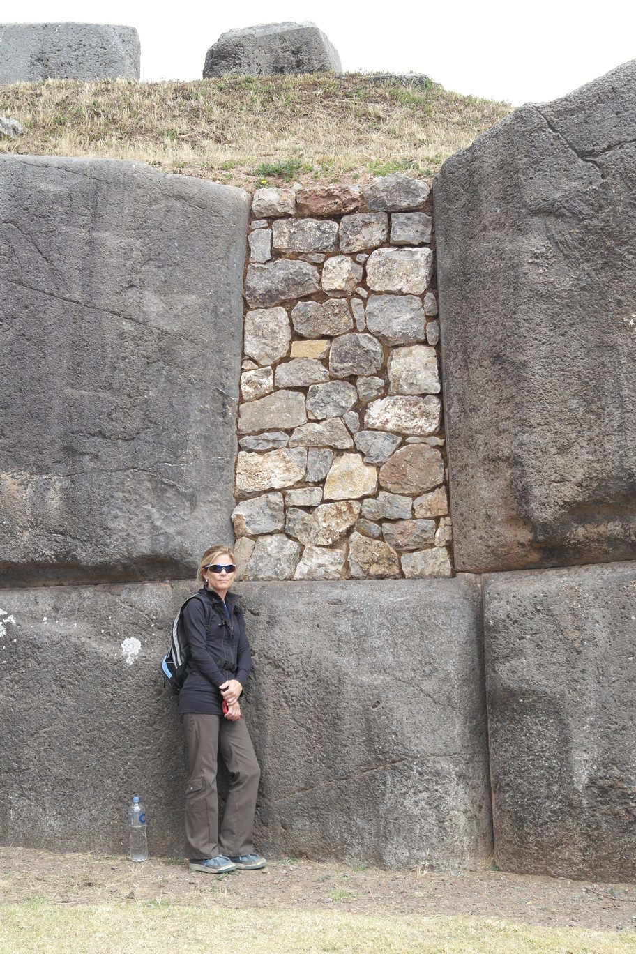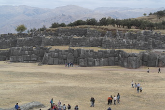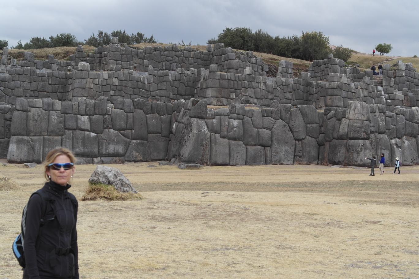 Sacsaywaman Fortress. The rocks were shaped with granite-on-granite hammers and smoothing stones. They say there is a 500-ton rock near by that was being pulled by 20,000 workers when it got out of control and killed 3,000, so they left it behind.