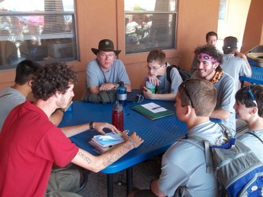 Dan, Spencer, Davis, andrew and Eric help with group gear.